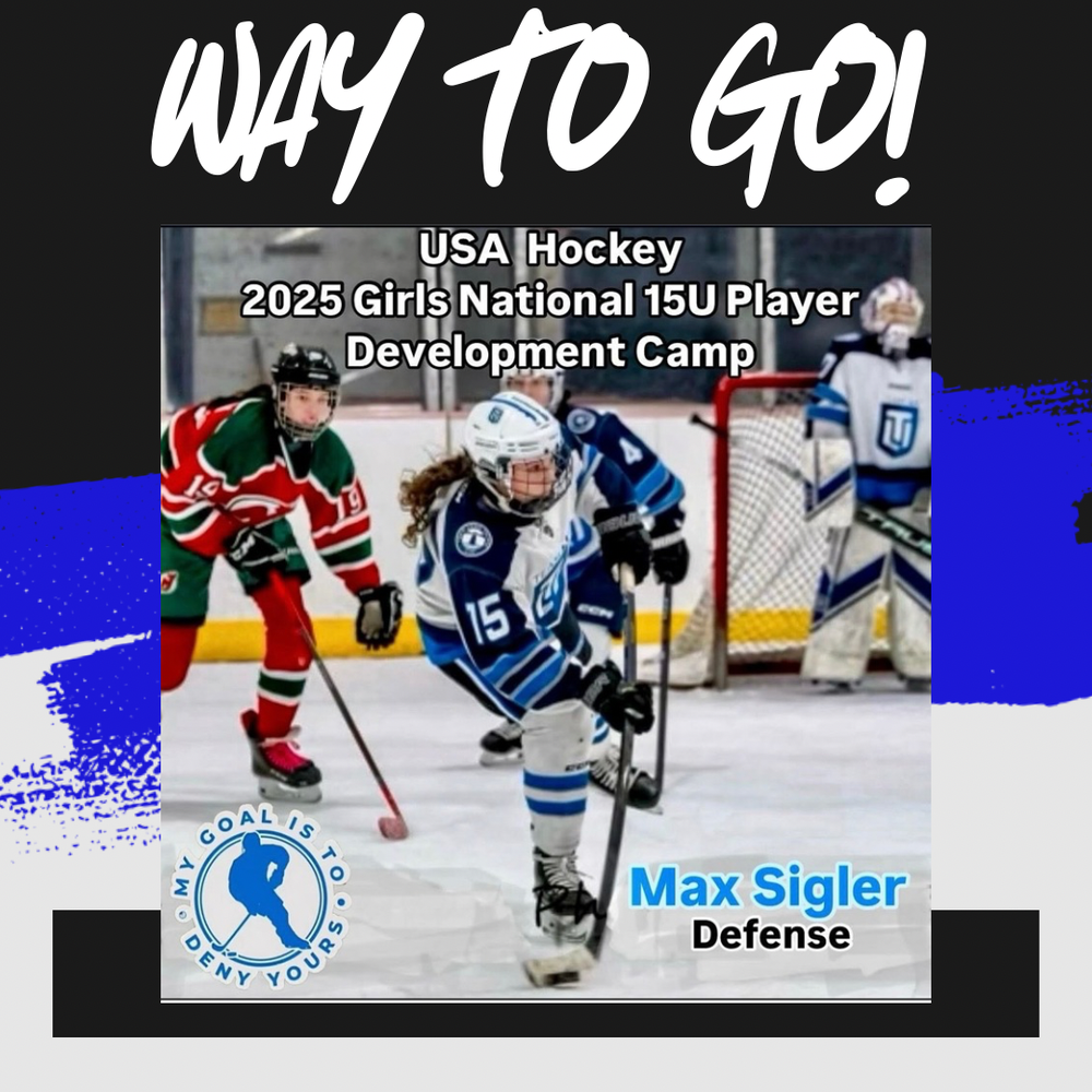 Weโre thrilled to announce that Max Sigler has been selected to the USA Hockey Girls 15 National Development Camp! Out of thousands of talented players across the country, Max earned the honor of showcasing her skills at this prestigious camp in July.