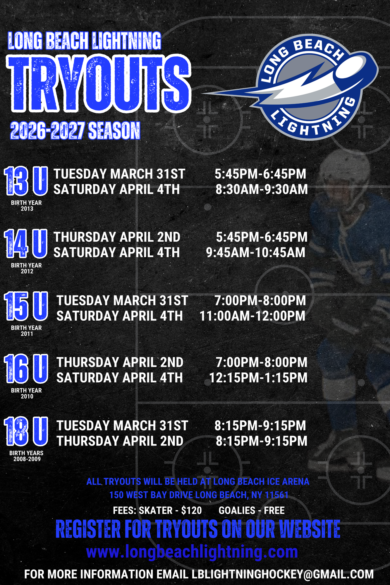 Players are expected to attend all tryout dates. Any player coming from another LIAHL organization must have an original NYSAHA player release form with a raised seal in order to tryout. All players will be expected to sign the NYS Player Commitment form before the final tryout.